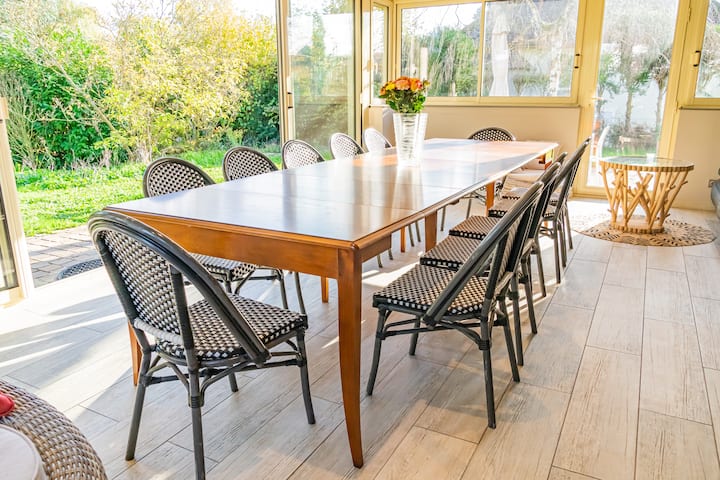 პარიზიდან 1 საათის სავალზე და გოლფიდან 5 წუთის სავალზე, მოდით და დატკბით ამ შესანიშნავი სახლის სიამოვნებით გათბობით საცურაო აუზით (27-29°) 12x5 მ (დაფარული/ღია), მდინარის პირას, ბრწყინვალე ტყის პარკში, სუფთა ნორმანული სტილით განახლებული და უზადოდ აღჭურვილი.