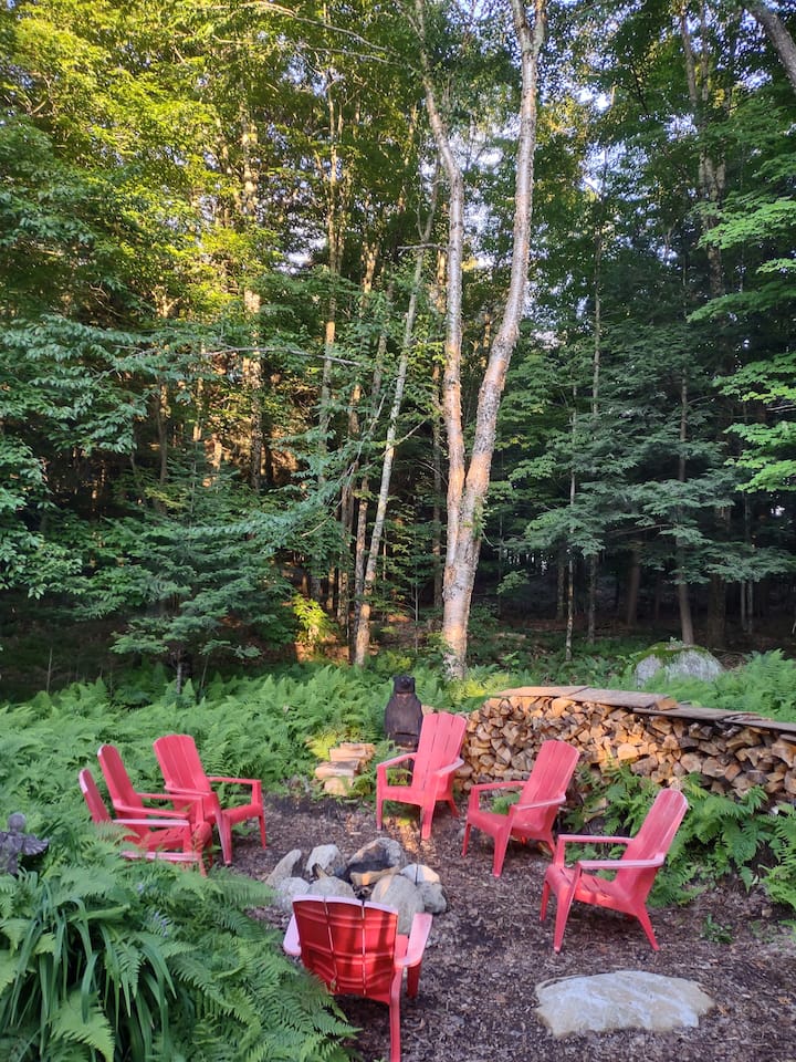 Ტყის გორაკზე მდებარე ეს სოფლის და მყუდრო ადირონდაკის შუა საუკუნეების გაფართოებული კონცხის სტილის სახლი 5 წუთის სავალზეა საზოგადოებრივი პლაჟიდან და ტბის გემბანიდან. Გემის გასრიალება, როგორც წესი, ხელმისაწვდომია წინა შეთანხმებით.