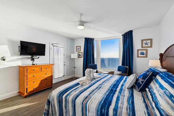 Მოგესალმებათ Emerald Beach Resort, Unit 1830. Ფლორიდის ზურმუხტის სანაპიროს ერთ-ერთი უახლესი და ნანატრი კურორტი, რომელიც ერთ ‑ ერთ მათგანს სთავაზობს! Მე-18 სართულის მდებარეობა საშუალებას გაძლევთ, იყოთ იდეალურად განლაგებული, რომ დატკბეთ მექსიკის ყურეში ფირუზისფერი წყლის შთამბეჭდავი ფერებით, ბრწყინვალე თეთრი ქვიშიანი პლაჟებითა და ქვიშის ბარებით. Თუ დელფინების, მანტა-რეისისა და ზოგჯერ მანათის ნახვაც კი გსურთ, ამ კონდომინიუმში დარჩენა ნამდვილად მოგინდებათ. Ეს დიდი (1299 კვ. ფუტი) კონდომინიუმი გაფორმებულია რბილ ფერებში, რომ გააუმჯობესოს ღია ცის ქვეშ ლამაზი ფერები. Მასში არის 2 საძინებელი, 2 სრული სააბაზანო, ასევე, დარბაზის ბუნკები და დივნის კაბინა მისაღებ სივრცეში, რომელიც ადვილად იტევს 6 ზრდასრულსა და 2 ბავშვს. Ეს შეიძლება იყოს თქვენი იდეალური სახლი სახლიდან შორს!