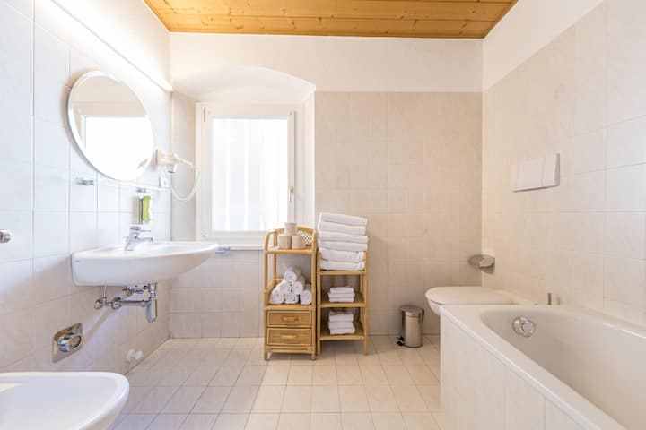 Ფართო 3-საძინებლიანი ბინა აივნით, რომელიც მაქსიმუმ 8 ადამიანს იტევს. Ორტისეის ცენტრში მდებარე ეს ბინა აღჭურვილია სოფლის, მაგრამ მოვლილი ავეჯით და განსაკუთრებით კომფორტულია. Საცხოვრებელი შედგება ორი ორადგილიანი საძინებლისგან, სამადგილიანი საძინებლისგან, სააბაზანოთი აბაზანით საშხაპით, ხელსაბანით, უნიტაზით, სარეცხი მანქანითა და ბიდეთი, უცნაური მისაღები ოთახით (ერთადგილიანი გასაშლელი დივნით) და ცალკე სამზარეულოთი. Აქ არის აივანი, რომელიც სანტ-ანტონიოს მოედანს გადაჰყურებს.