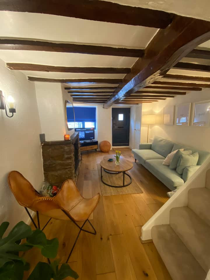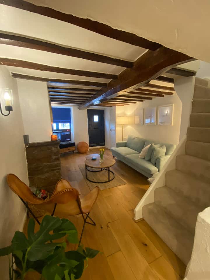 1750-იანების კოტეჯი ღია ცეცხლით და კოჭებით