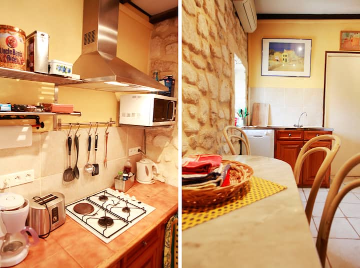 Ჩვენ ვცხოვრობთ ფერმერულ სახლში ქალაქგარეთ და პეტიტ-რონის ნაპირებზე. Ძალიან ადვილად მისადგომი D6113, რომელიც მიდის Arles-დან Nîmes-მდე და 5 კმ-ში არლის ცენტრიდან. Შესანიშნავი ადგილია მთელი ტერიტორიის მანქანით დასათვალიერებლად. TGV სადგურები Nimes-დან, Avignon-დან და Arles-დან. Მარსელისა და მონპელიეს აეროპორტები.