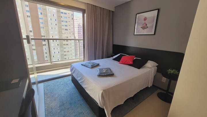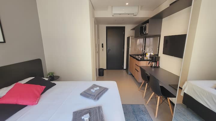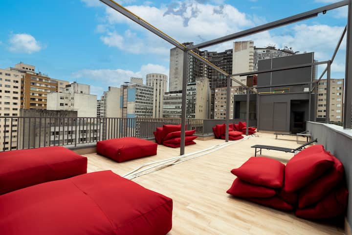 Ლინდოს ბინა, სტუდიო (აპარტამენტი) 22 მ2, 15° სართული, ანჰანგაბაუს მეტროდან 500 მეტრში (ფეხით 7 წუთის სავალზე) და 1,3 კმ-ში რეპუბლიკის მეტროდან (8 წუთის სავალზე).