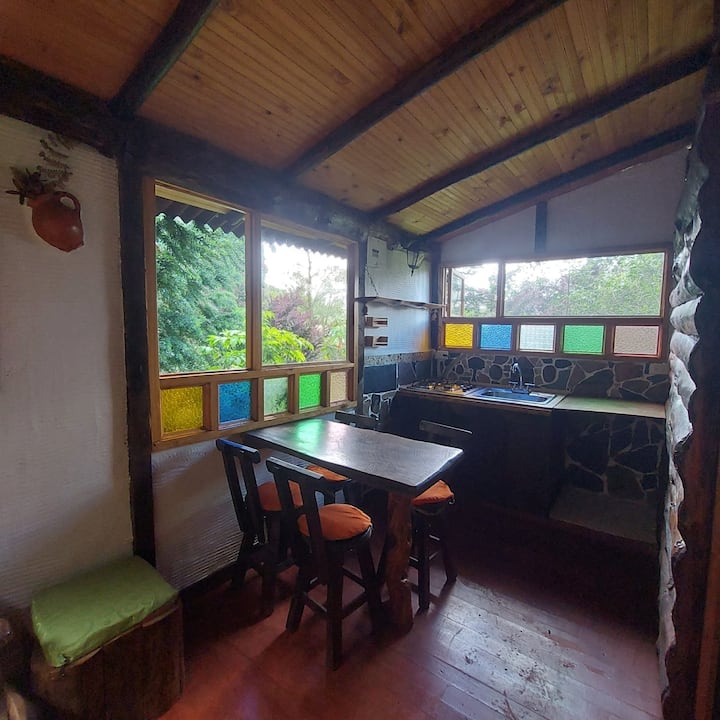 Სოფლის ხის სახლი მთის მწვერვალზე და შუაგულში, ჯადოსნური განსაკუთრებული ადგილი, რომელიც თავისუფალია 1 ადამიანისგან მაქსიმუმ 4 ადამიანისგან