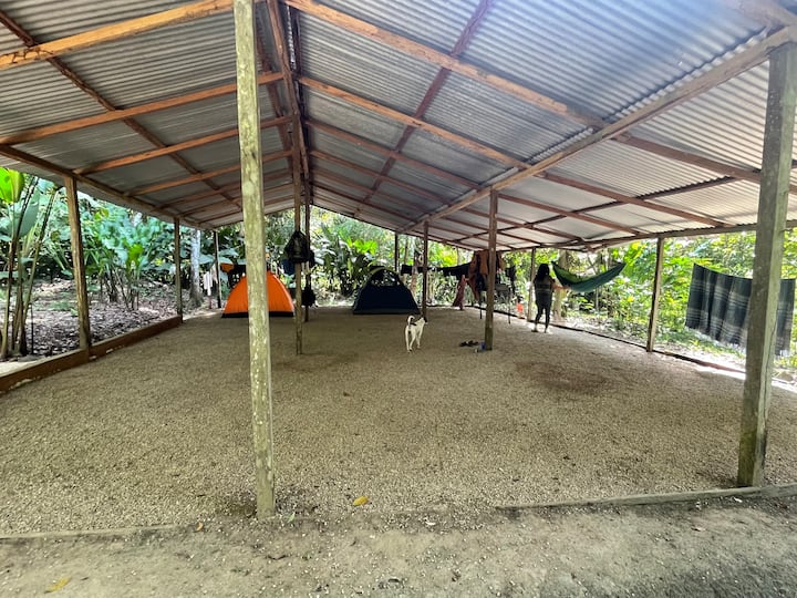 Კემპინგის სივრცე არის დიდი კომუნალური კარავი Palapa-ს ტიპის ტერიტორია შესანიშნავი ხრეშის იატაკით სახურავით, რომელიც წვიმიან სეზონზე ძლიერი წვიმებისგან გიცავთ. Ჩვენ გთავაზობთ სივრცეს, კარავს, მატრასს, ზეწრებს, ბალიშებსა და პირსახოცებს. 1-2 ადამიანი თითო კარავში.