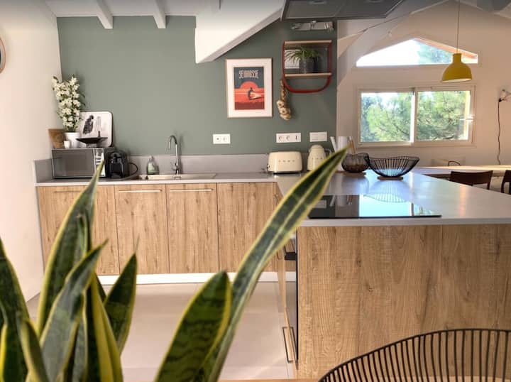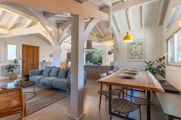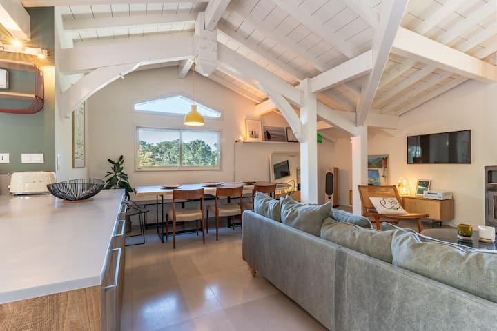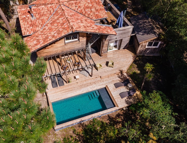 Ფეხით 10 წუთის სავალზე ლე ‑ ბურდეინესის სანაპიროდან და გოლფიდან ფეხით სავალ მანძილზე, ვილა ‑ ლენდფორნია გიწვევთ განსაკუთრებულ საცხოვრებელში იშვიათი სილამაზის ბუნებრივ გარემოში. Სეინიოსის ტყის პანორამული ხედებით, ეს ვილა აერთიანებს აბსოლუტურ სიმშვიდესა და თანამედროვე კომფორტს დაუვიწყარი დღესასწაულისთვის.