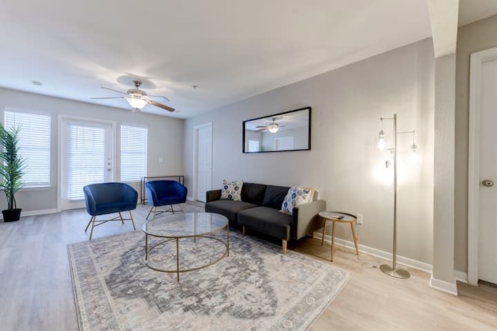 Განიტვირთეთ თანამედროვე ოთხსაძინებლიან ბინაში ისტ-რივერსაიდში, რომელიც ოსტინის ერთ-ერთი საუკეთესო ნაწილია საცხოვრებლად, UT/Austin აეროპორტთან ახლოს.