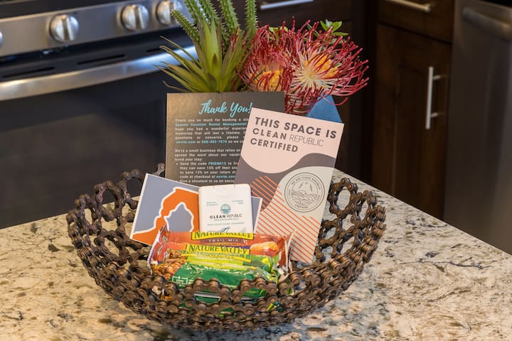 - სრულად მომარაგებული გურმანული სამზარეულო შერეული თასებით, ქვაბებითა და ტაფებით, მიქსერით, ბლენდერით, გრიდით, Keurig-ით, სტანდარტული ყავის აპარატით, სამზარეულოს ძირითადი ნაკეთობებით, ყავის ფილტრებით, ალუმინის ფოლგით, პლასტმასის გადასაფარებლით, ხელსახოცებით, ზიპლოკის პარკებით და სხვა