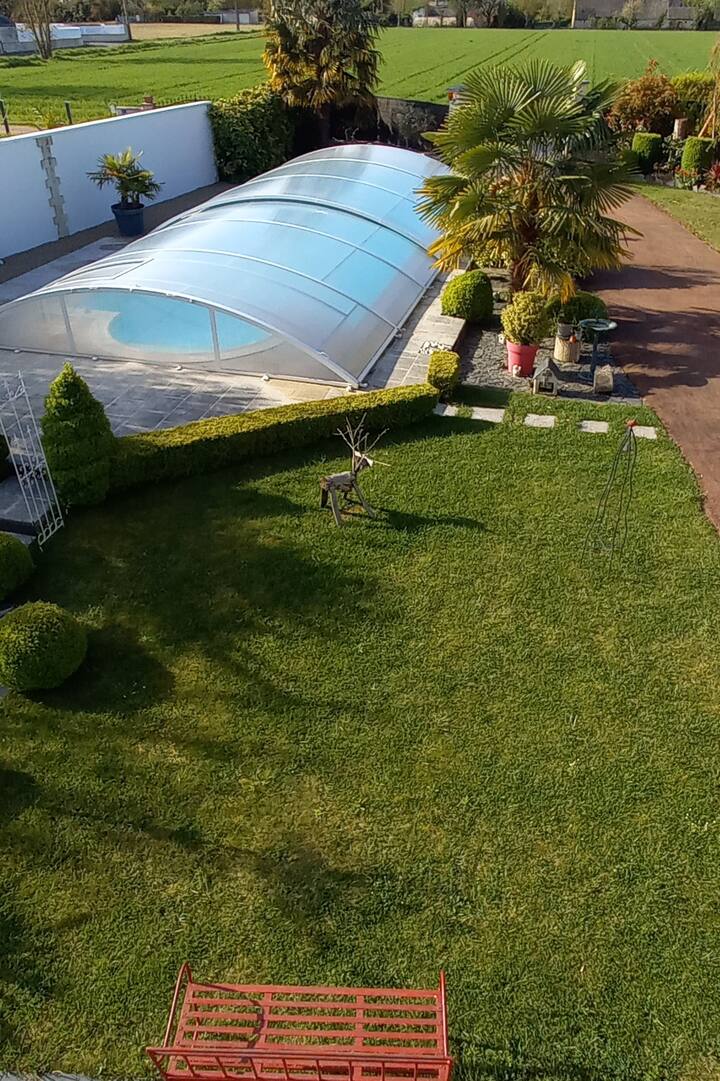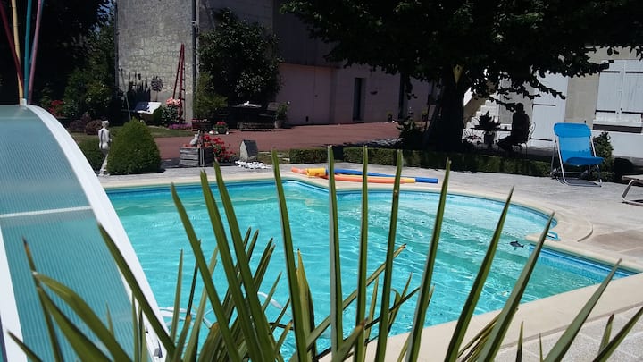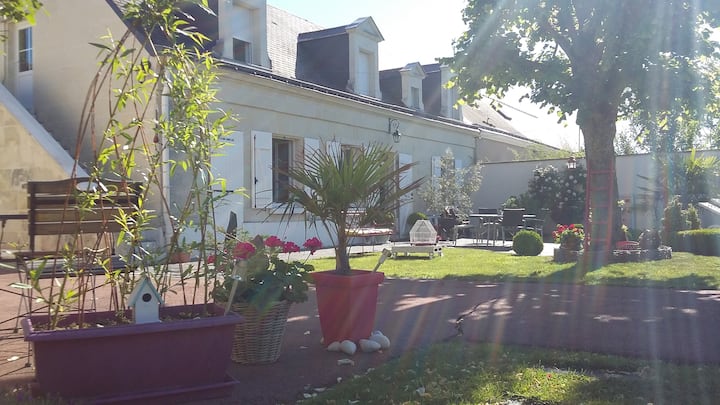 Მოხარული ვიქნებით, თუ მოგესალმებით მეფეთა ხეობის შუაგულში, ლუარის ხეობის ტიპურ სახლში, ტუფას ფერმერულ სახლში. Კარგი დღის ტურებისა და აღმოჩენების შემდეგ შეგიძლიათ დაისვენოთ ჩვენს აუზში და შემდეგ დაისვენოთ ლუსილეს ფართო ოთახში. Მალე გნახავთ სასიამოვნო შთაბეჭდილებისთვის.