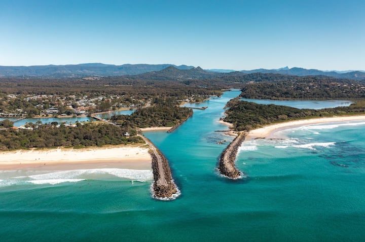 Სანაპირო სახლი, მდინარე და სერფ-ბიჩი