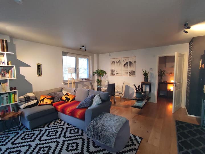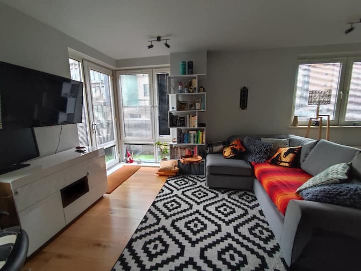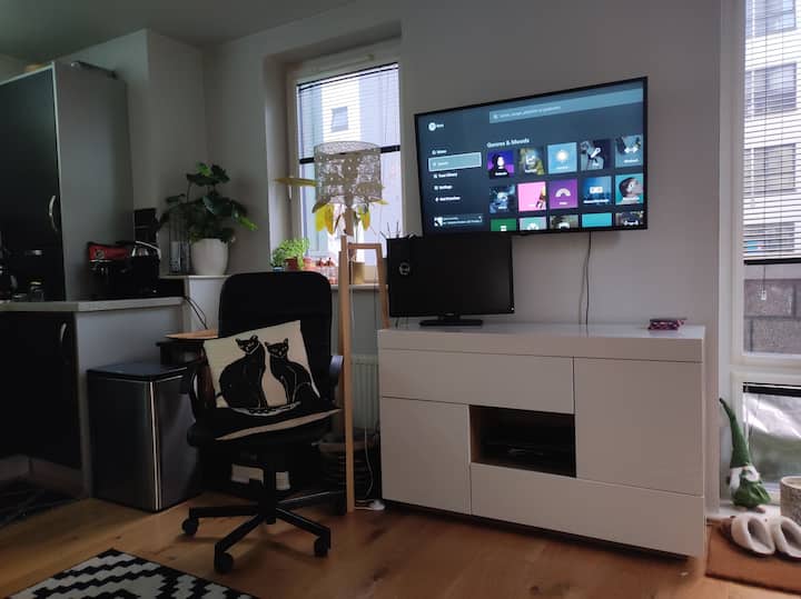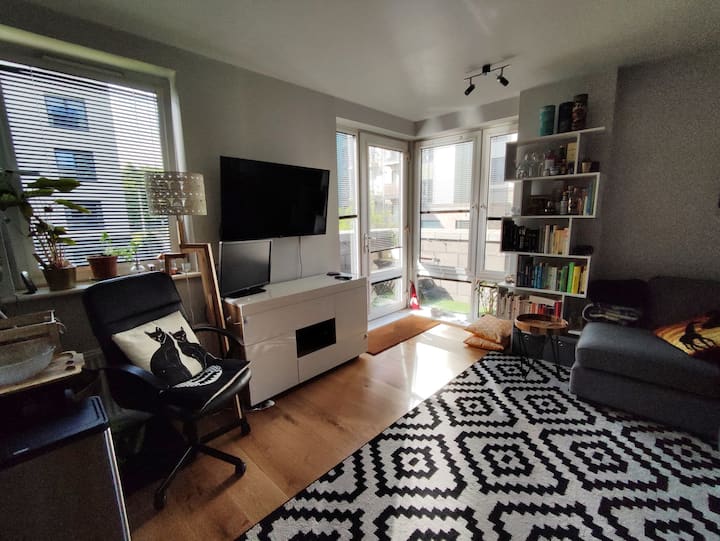 Თანამედროვე ბინა შინაური გარემოთი. შედის პარკირების ადგილი.