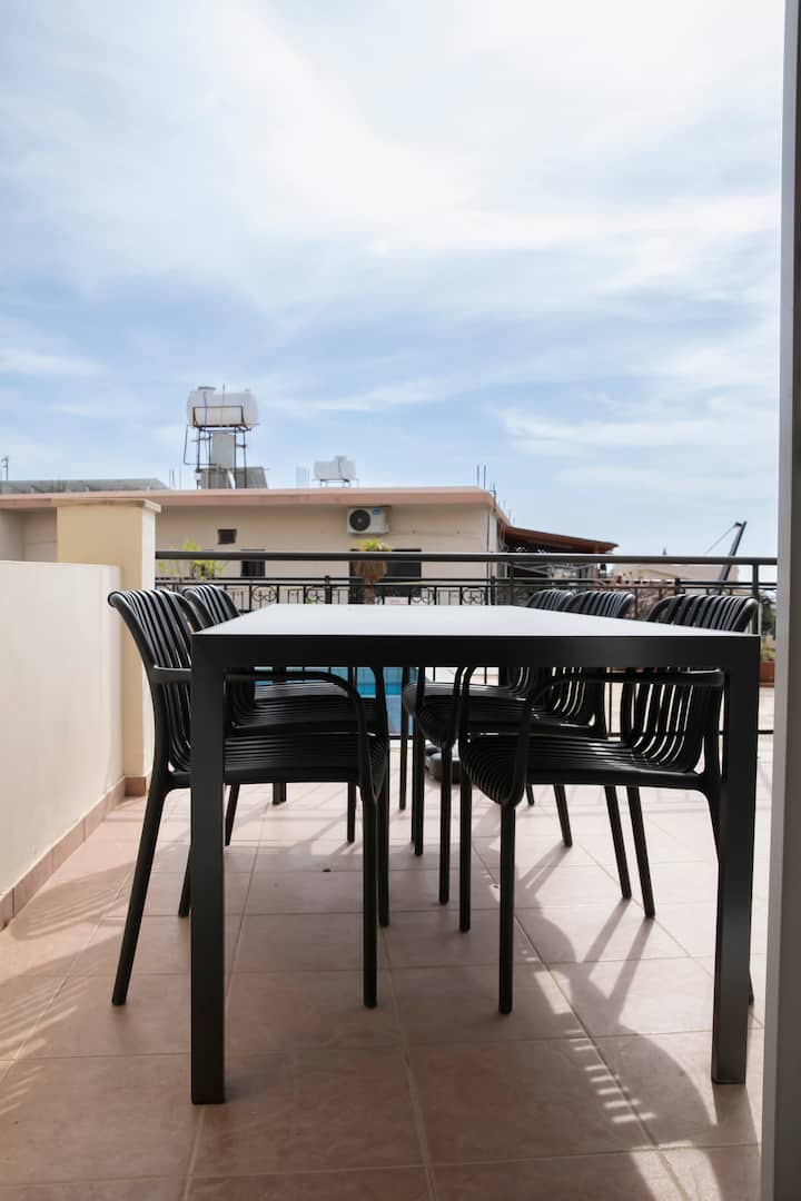 - დასასვენებლად დასაქირავებელი საცხოვრებლები გარე დასაჯდომი ადგილებით: Peyia