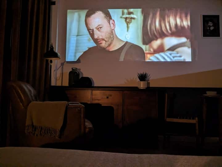 მაღალი გარჩევადობის 90‑დუიმიანი ტელეეკრანი და Disney+, Netflix