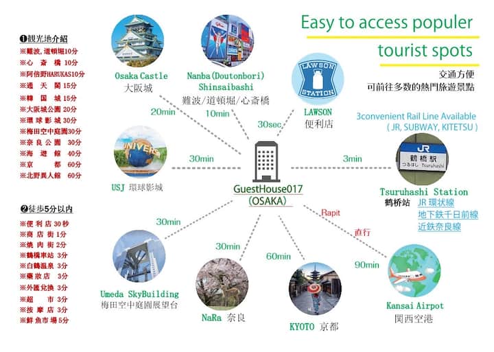 Კანსაის აეროპორტი პირდაპირ,სადგური 3 წუთი , 6 ოთახი