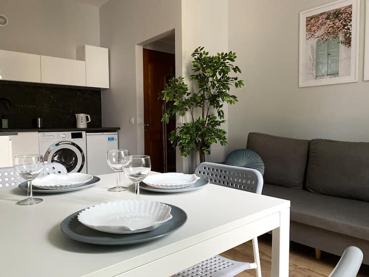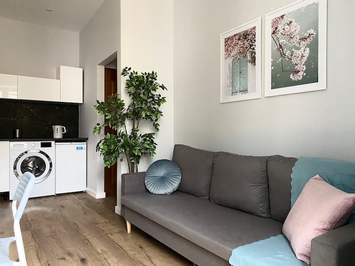 Ბინაში არის საკეტიანი საძინებელი ორადგილიანი საწოლით, მისაღები ოთახი გასაშლელი დივნით, სამზარეულო და სააბაზანო, რომელიც დაკავშირებულია უნიტაზთან. Ჩვენ გთავაზობთ პირსახოცებს, თეთრეულსა და საყოფაცხოვრებო პირობების უმეტესობას, რომლებიც აუცილებელია კომფორტული მოგზაურობისთვის. Ცენტრალური მდებარეობის მიუხედავად, ცალკე ეზოში მდებარე ტერიტორიის მდებარეობის გამო სიმშვიდისა და სიწყნარის იმედი გაქვთ.