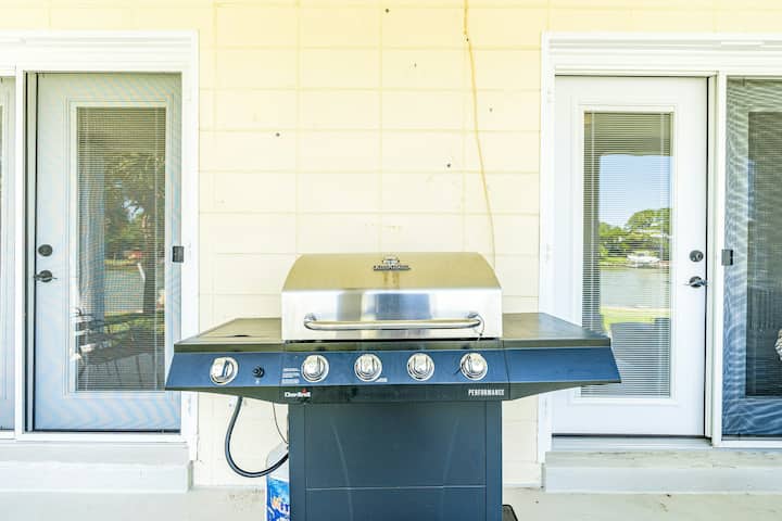 სილამაზის ნიმუში ყურეს პირას, აუზით, გრილით, ნავმისამართით და წიგნის კუთხით
