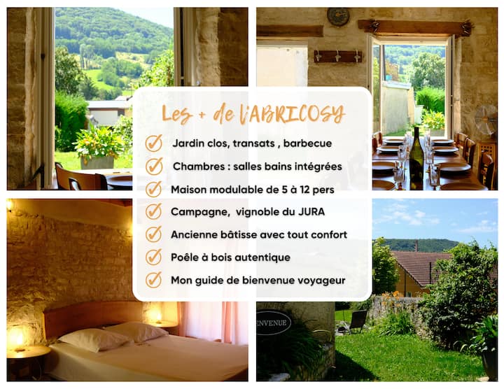 Დაისვენეთ მშვიდ სოფელში, იურას შუაგულში, მეღვინეობის ფართო განახლებულ სახლში, კერძო კედლებიანი ბაღით, მეგობრებთან ან ოჯახის წევრებთან ერთად დაუვიწყარი მოგონებების შესაქმნელად.