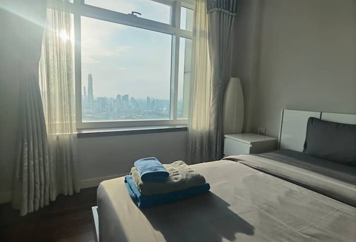 Ნანა ბარის ტერიტორიასთან/ბუმრუნგრადის საავადმყოფოსთან 500მ/40 სართული მაღალსიჩქარიანი ქალაქის ხედით ერთსაძინებლიანი ბინა