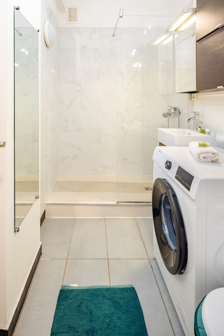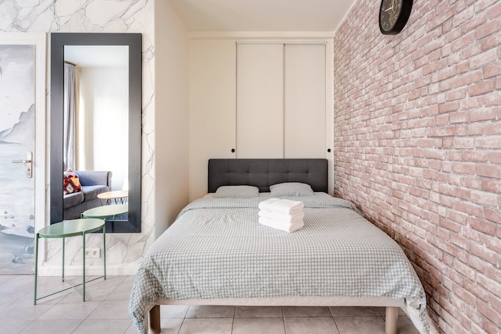 ელეგანტური სტუდიო მე‑16 რაიონში, საწოლი 193×203 სმ, პატარა ქუჩაზე გასასვლელი