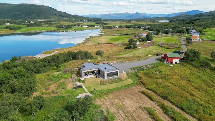 Ელეგანტური ხის სახლი ფიორდის პანორამული ხედით