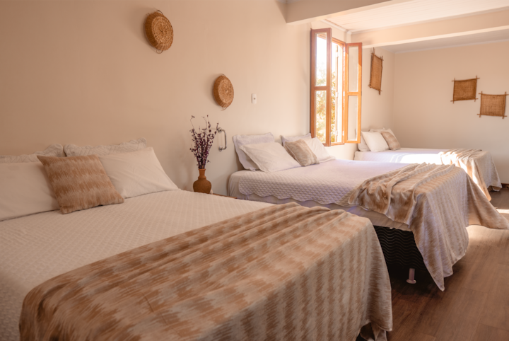 სტუმრებისთვის ხელმისაწვდომია მყუდრო ლუქს‑კლასის ნომრები და დიდი მისაღები ოთახი, რომელიც აღჭურვილია პუფებით, ჰამაკებითა და ჩამოკიდებული საწოლებით, რომლებიც იდეალურია დასასვენებლად. საერთო სამზარეულო სუფთა, ორგანიზებული და სრულად აღჭურვილია, სტუმრებისთვის განკუთვნილი დიდი ტელევიზორით კი კიდევ უფრო კომფორტული იქნება საჭმლის მომზადება.
