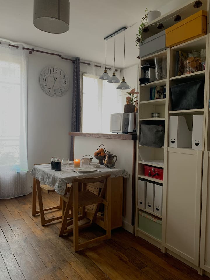 Მომხიბლავი სტუდიო პარიზის შუაგულში.