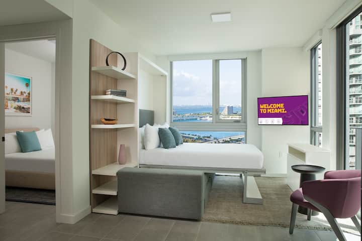 Სტუდიო და 1 საძინებელი ვარიანტი ხელმისაწვდომია, ჩვენი PADs აღჭურვილია სრული სამზარეულო ტექნიკით და ჭურჭელი, სარეცხი მანქანა და საშრობი, და გთავაზობთ თვალწარმტაცი ხედები Biscayne Bay და Downtown Miami. Იდეალურია მარტო სივრცე-მაქსიმიზატორებისთვის ან ჯგუფებისთვის, რომლებიც ერთად მოგზაურობენ, დაისვენეთ და დაიმუხტეთ სრული მისაღები ოთახით, რომელიც მოწყობილია მერფის ინდივიდუალური საწოლით.