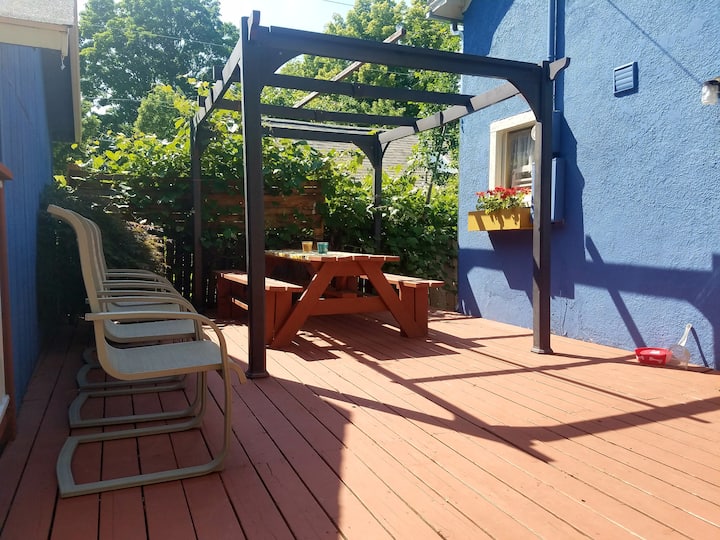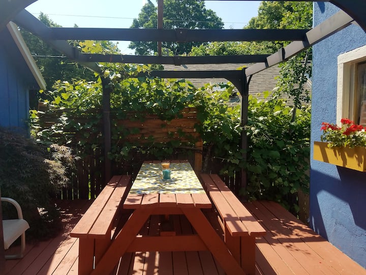 Იმავე ეზოში, მთავარი სახლის პირდაპირ, თქვენ იპოვით უცნაურ და ლამაზ ხელოსნის სტილის საოჯახო სასტუმროს, რომელიც იდეალურია ბავშვებისთვის ან წყვილებისთვის, რომლებიც ეძებენ დამატებით განმარტოებას. Ამ მომხიბვლელ კოტეჯში არის 1 ცალკე საძინებელი, 1 სააბაზანო და 4 კომფორტული ძილი. Სრული სამზარეულოთი, სასადილო კუთხეებით, ორმაგი კარადებითა და სამრეცხაო ოთახით, ყველა კომფორტი თქვენს ხელთაა. Დაისვენეთ საძინებლის კომფორტულ საწოლში ან განიტვირთეთ მისაღებ სივრცეში სრული ზომის გასაშლელი ტახტით. Ახლახან გადაკეთებული ხის იატაკი, რომანტიკული ბუხარი, გრანიტის სტილის სამუშაო ზედაპირები, ახალი საყოფაცხოვრებო ტექნიკა, მოზაიკური ფილების სააბაზანო და დახვეწილი ხელოსნის მიერ შთაგონებული ხის მორთვა, ეს საოჯახო სასტუმრო წარმოაჩენს სითბოსა და ელეგანტურობას.