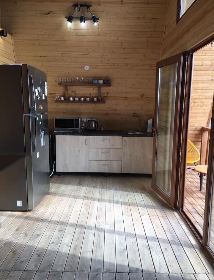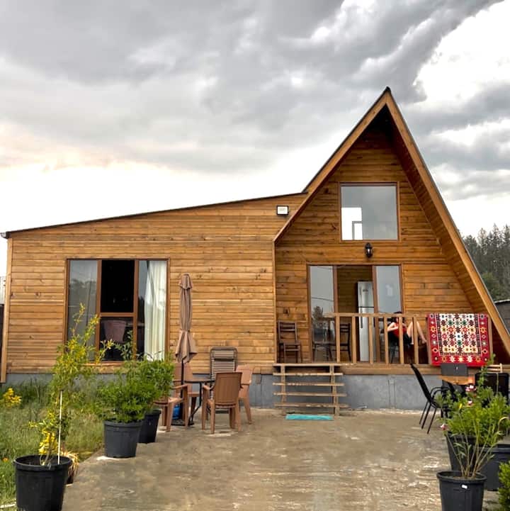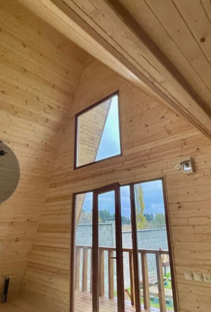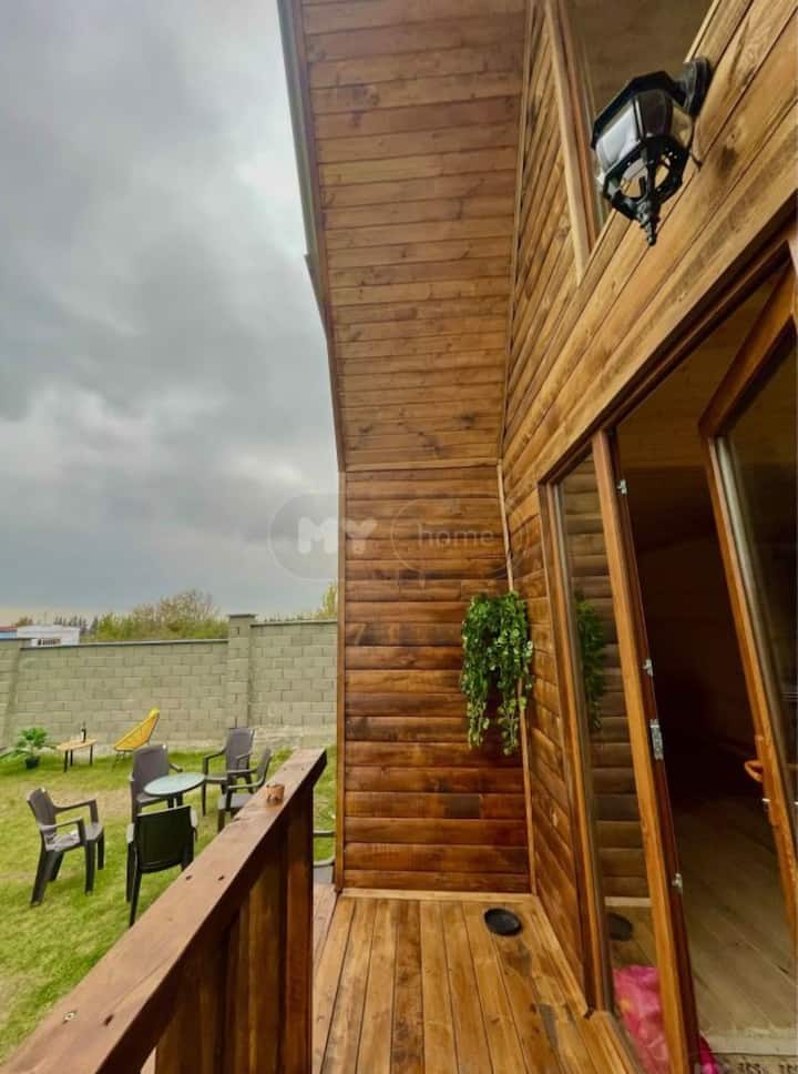 კეთილმოწყობილი ხის კოტეჯი