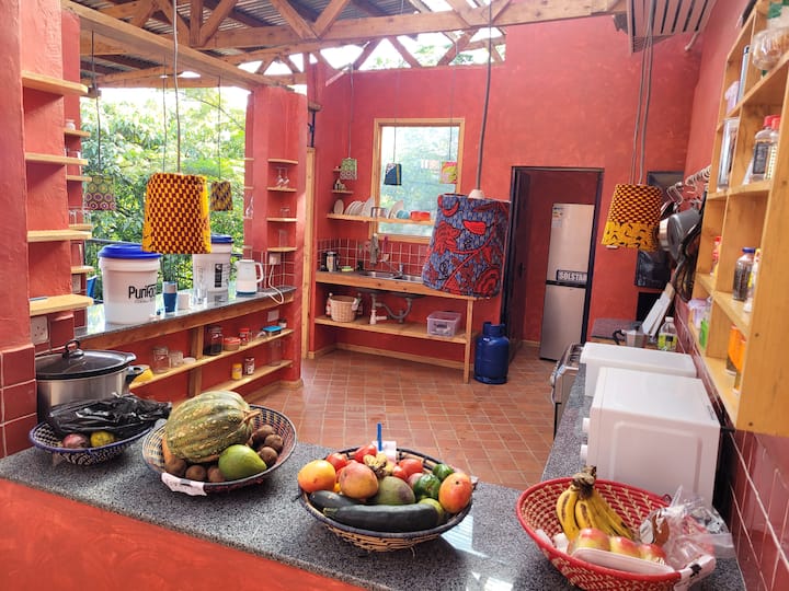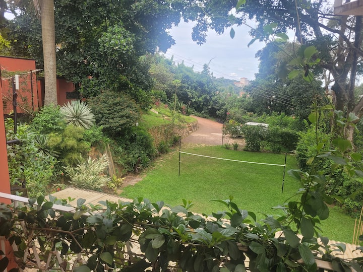 Ჩვენი სახლი არის ერთკაციანი ტყიანი მიწის ნაკვეთი მაკინდიე-ჰილზე, საიდანაც იშლება შესანიშნავი ხედები დღე-ღამის ნებისმიერ მონაკვეთში. Სტუმრებს შეუძლიათ გამოიყენონ ბადმინტონის/ფრენბურთის მოედანი ან ჩააგდონ ბაღის წვეულებები ბალახზე და ითამაშონ კროკეტი ან გამოიყენონ პიცის გარე ღუმელი. Სამზარეულო საზიაროა და კვება ხშირად ვერანდებზეა. Თქვენი თანამემამულე სტუმრები იქნებიან ვიზიტორების, ხშირად სტაჟიორებისა და პროფესიონალების ნაზავი უგანდურ კომპანიებში ან ნებაყოფლობით ორგანიზაციებში. Თქვენი პირადი მეგობრების გასაზიარებლად და სხვა სტუმრებთან ერთად გასაზიარებლად, ასევე, შეგიძლიათ გაუზიაროთ სხვა სტუმრებს.
