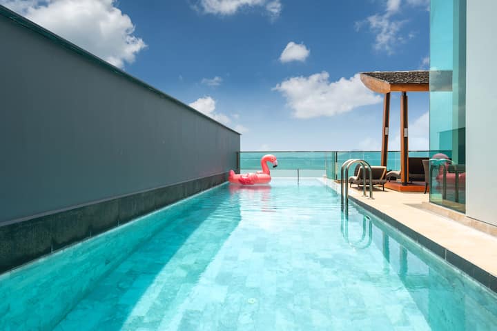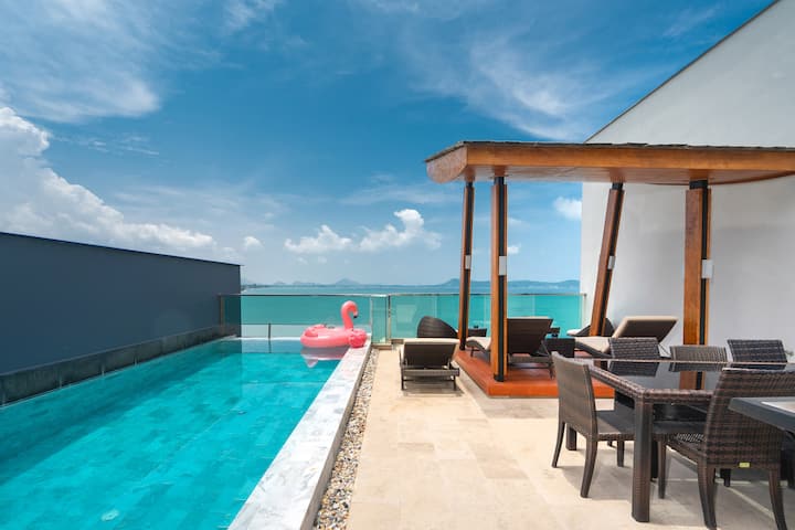 Გაატარეთ დრო ამ შესანიშნავ 800 კვ.მ. ვილაში, რავაის ბიზნეს რაიონში, ფუკეტში (ტაილანდი)! Ეს ლუქს-კლასის ვილა მდებარეობს ლუქს-კლასის ვილების გაერთიანებაში, ფუკეტის ყველაზე ექსკლუზიურ პლაჟისპირა ვილაში 270° -იანი უკიდეგანო ზღვის ხედით, შორეული პატარა კუნძულები, გემები და მშვიდი პირსი, სადაც შეგიძლიათ უყუროთ ლამაზ მზის ამოსვლას დილით კერძო პლაჟსა და სახურავის ზედა ხედის პლატფორმაზე, ხოლო საღამოს შეგიძლიათ დატკბეთ მზის ჩასვლის შესანიშნავი მზის ჩასვლით.