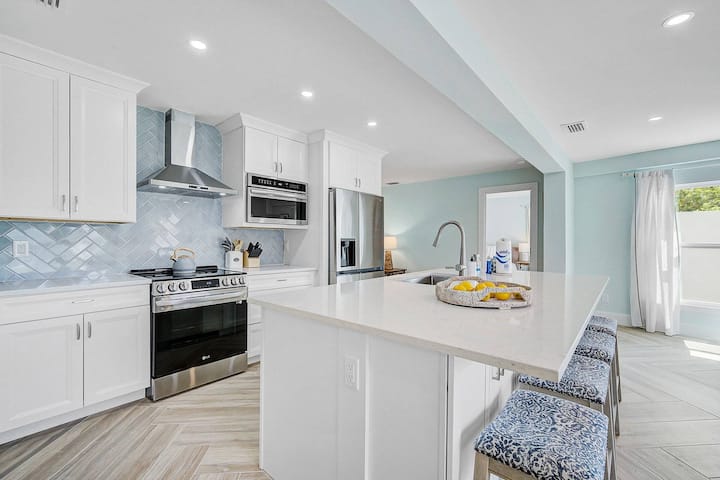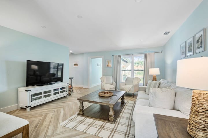 Შედით სახლში მზის სხივებით სავსე დერეფანში, როცა მიუახლოვდებით მისაღებ ოთახს, სადაც დაგხვდებათ ლამაზი მსუბუქი და ჰაეროვანი სანაპირო დეკორი, დიდი ტელევიზორი და რამდენიმე საოჯახო თამაში. Იმოგზაურეთ ფართო ღია სამზარეულოში განახლებული თანამედროვე საყოფაცხოვრებო ტექნიკითა და სახლისთვის დამახასიათებელი კომფორტით. Დიდი სასადილო ოთახი მაგიდით და ექვს ადგილიანი დასაჯდომით. Მთავარი საძინებელი დიდი საწოლით და სააბაზანოთი, რომელიც შეიცავს დიდ შესასვლელ საშხაპეს. Არაგაბარიტული შესასვლელი კარადა. Შუშის კარების გასრიალება მიდის გარე პატიოსკენ და შემოღობილია კერძო დიდ უკანა ეზოში, ცალკე აუზითა და ჰიდრომასაჟიანი აუზით თქვენი დასვენებისთვის, ან გაატარეთ დრო ცეცხლოვან ორმოში უფრო მაგარ საღამოებზე! Აუზის გათბობა ხელმისაწვდომია ნოემბრიდან აპრილამდე, მოთხოვნის შემთხვევაში, დღეში 35 $ -ად. Სახლის მოპირდაპირე მხარეს დაგხვდებათ ორი კომფორტულად დანიშნული სასტუმრო ოთახი Queen-ის საწოლითა და ინდივიდუალური კარადებით. Სტუმრების სააბაზანო მდებარეობს დერეფანში, სტუმრების ოთახებს შორის. Ავტოფარეხის შიგნით დაგხვდებათ სარეცხი მანქანა და საშრობი, ასევე, პლაჟის სკამები, ქოლგა და პატარა ქულერი, რომელიც სტუმრებისთვისაა განკუთვნილი, ასევე, შეგიძლიათ დააყენოთ უკანა პატიოზე და გამოიყენოთ სტუმრობისას. Დაისვენეთ ჰიდრომასაჟის აუზში, დააგემოვნეთ გრილი ბარ-ბაქიზე და ისადილეთ გარე მაგიდასთან, ასევე, დაათვალიერეთ საკუთრებაში დარგული მრავალი ხეხილი და დატკბით გარე ბუხრით უფრო გრილ თვეებში (ახალი დამატებითი სურათები მალე). Ეს შესანიშნავი ადგილია საცხოვრებლის დასათვალიერებლად და გამაახალგაზრდავებელი დასვენებისთვის. Ეს სახლი, ასევე, აღჭურვილია უნივერსალური ელექტრომობილის დამტენით სტუმრებისთვის.
