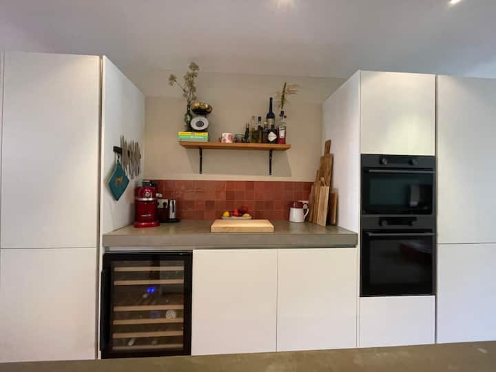 Თანამედროვე ბინა (105 მ) ბაღით ქალაქის ცენტრში