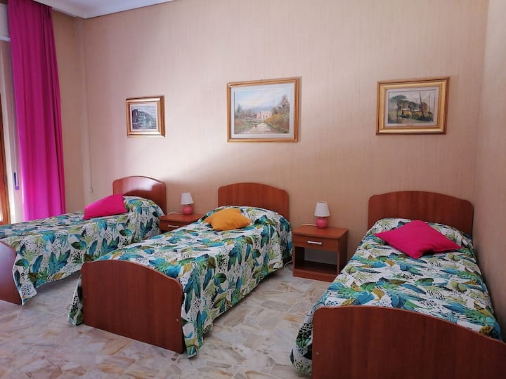 Სამადგილიანი ოთახი ცალკე სააბაზანოთი და აივნით ზღვის ტერიტორიაზე