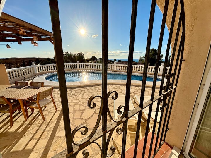 Ლამაზი ესპანური ვილა ცალკე აუზითა და ზღვის ხედით