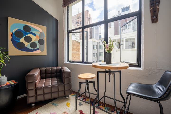Კეთილი იყოს თქვენი მობრძანება Zodiak Stays-ის ამ მყუდრო სტუდიურ ლოფტში, მომხიბვლელ ისტორიულ შენობაში. Ეს საცხოვრებელი აღჭურვილია მაღალი 3,6-მეტრიანი ჭერითა და მეორე საწოლით ანტრესოლით. Კომპაქტური სამზარეულო, კომფორტული საწოლი და კეთილმოწყობილი ინტერიერი სასიამოვნო შთაბეჭდილებას გპირდებათ. Ოკლენდის კანცელარიაში მდებარეობს ფეხით სავალ მანძილზე ისეთი ღირსშესანიშნაობები, როგორიცაა Sky Tower და Aotea Square.