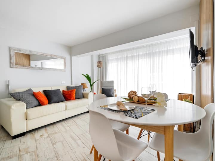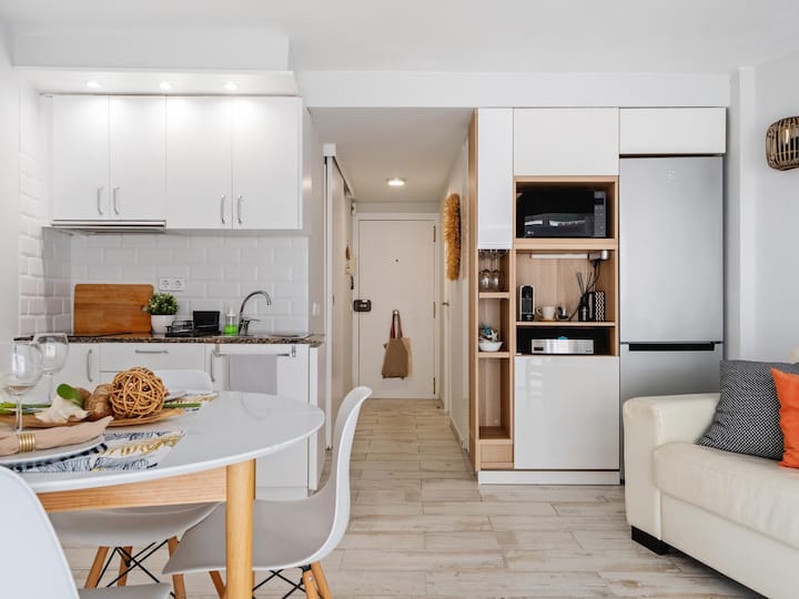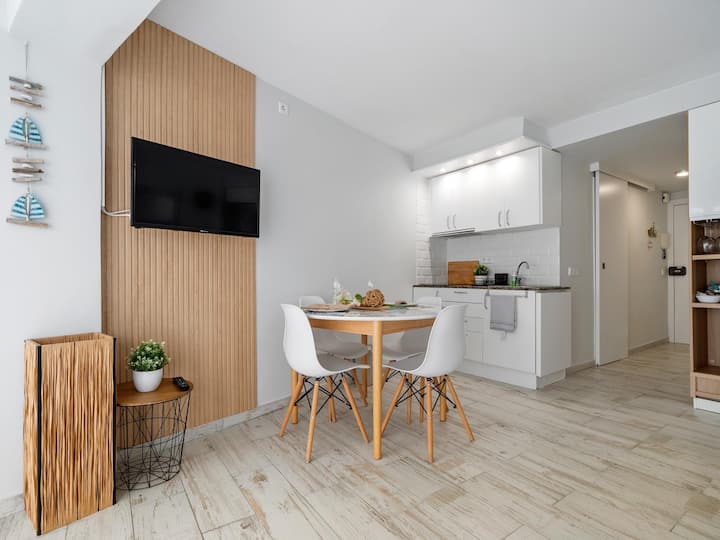 Იდეალური ბინა წყვილებისთვის 50 მ პლაჟი და მაღაზიები