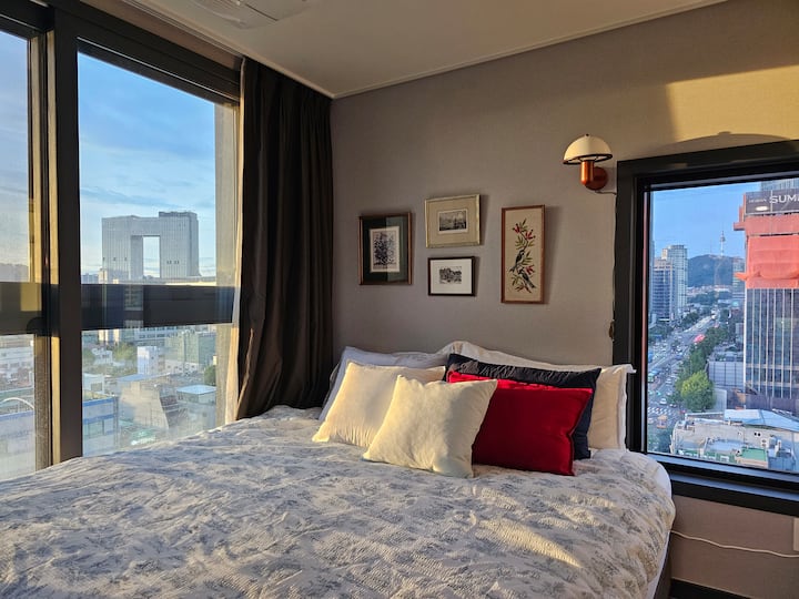 # Open Namsan City View # 2 Beds # Center of Seoul # Hangang Walk # Myeongdong # Itaewon # Nearby Famous Cafe # Dedicated Dryer