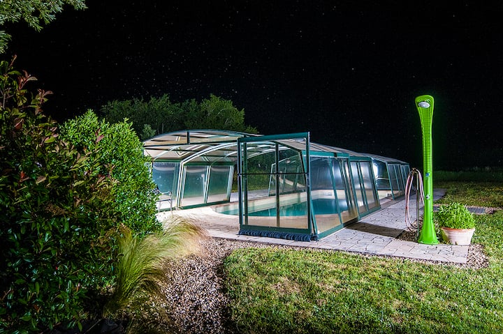 Თქვენი თავგადასავლებიდან დაბრუნებისას, ჩვენი აყვავებული ბაღი აუზით გთავაზობთ იდეალურ ადგილს დასასვენებლად. მეტი საუკუნეა, რაც ჩვენს ბაღში ხეები იზრდება. ისინი მშვიდი ჩრდილით გაგიმასპინძლებენ, სადაც შეგიძლიათ მზის ქვეშ განიტვირთოთ ადგილობრივი ბურგუნდული ღვინით ხელში ან მეგობრებთან ერთად პეტანკი/ბულები ითამაშოთ.