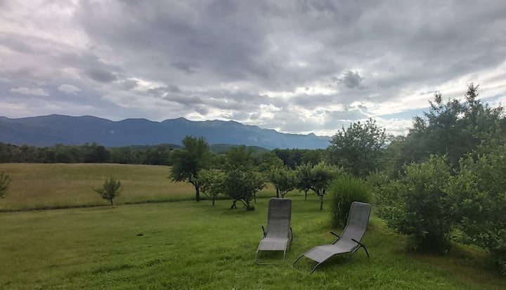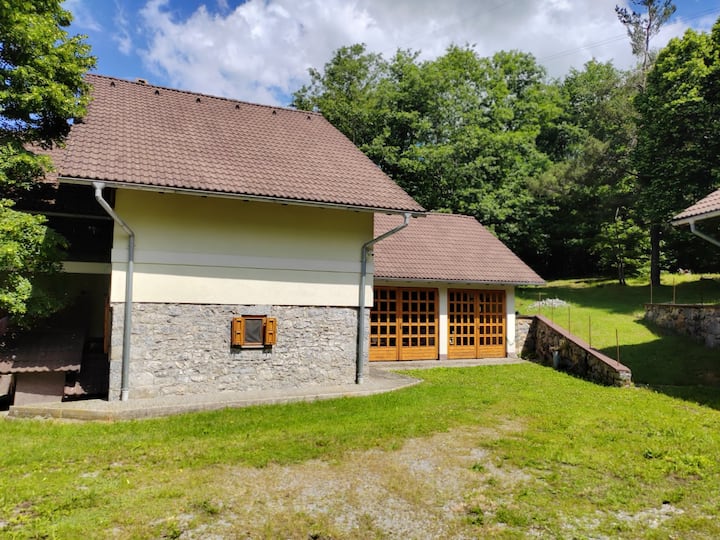 Განმარტოებული სახლი ტყესთან, გზიდან 200 მეტრში, კერძო გზა ჭიშკრით სახლამდე, სრული კონფიდენციალურობა. Სახლი არის დაახლოებით 220 კვადრატული მეტრი, სრულად აღჭურვილი.
