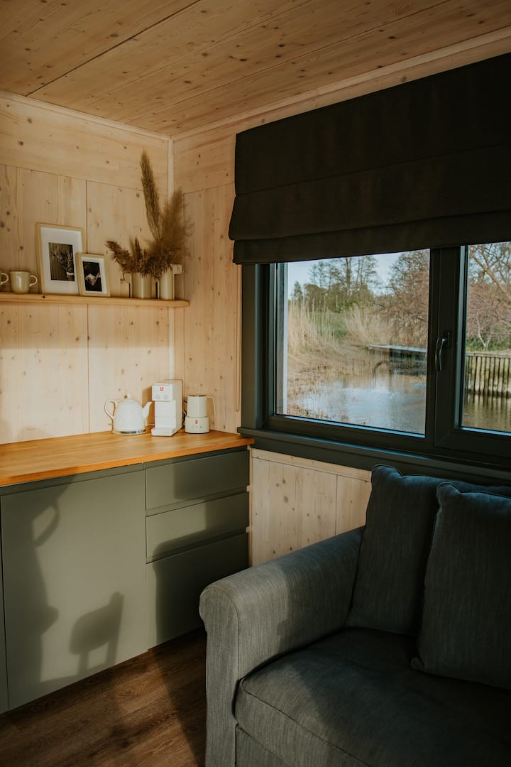 Მცურავი სახლი საუნით საცხოვრებელი ლერწებში
