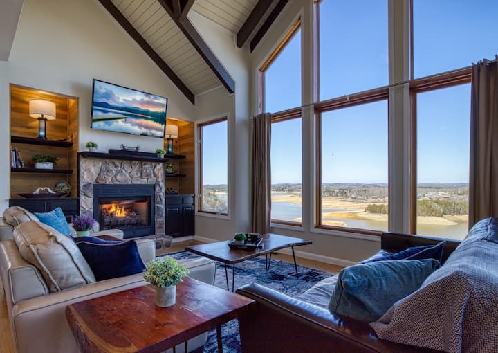 ხის სახლი ტბის ხედით — პანორამული ხედები ტბასა და მთებზე