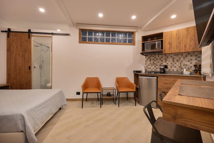 Ახალი და მყუდრო ერთ ოთახიანი ბინა პობლადოში/AC