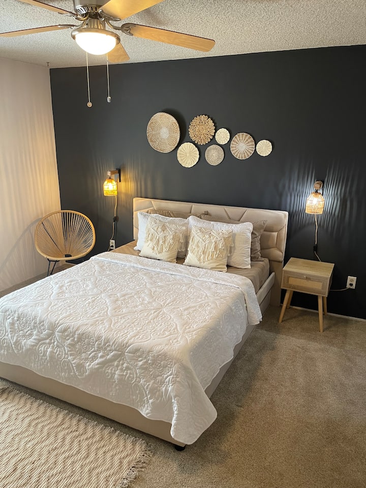 Ბოჰემური ოთახი პირადი აბაზანითა და შესასვლელი კარადით