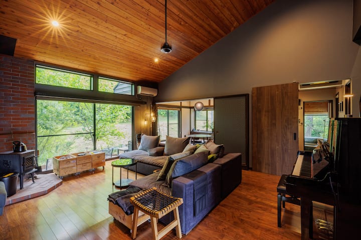 Არაჩვეულებრივი ხედები გორაკიდან.Დატკბით ზრდასრული ადამიანის მშვიდი ატმოსფეროთი ოთახში, სადაც ლამაზად არის შეხამებული ფორტეპიანო, შეშის ღუმელი და უახლესი საყოფაცხოვრებო ტექნიკა.