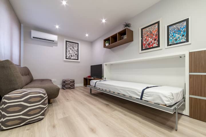 Მყუდრო 1BD სან-მიგელ-პლაზა მერი ქალაქის ცენტრში