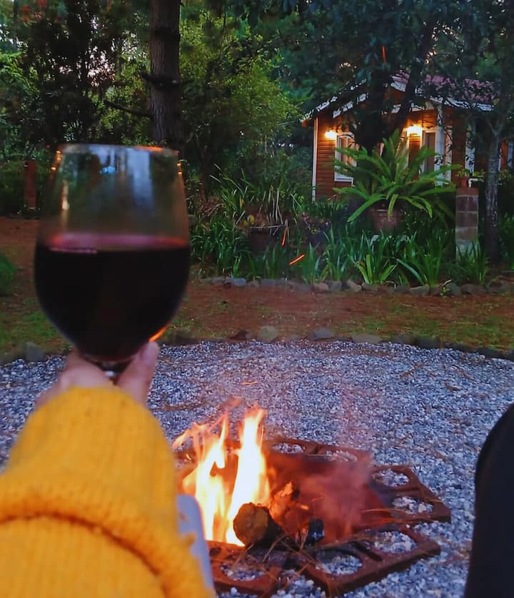 კერძო ხის სახლი ფიჭვების შორის | კერძო ბარბექიუ კოცონთან