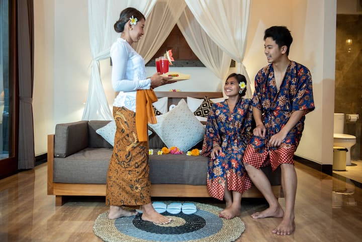Მადჰავას უბუდის ვილა და სპა ერთი საწოლი ოთახი ცალკე აუზით