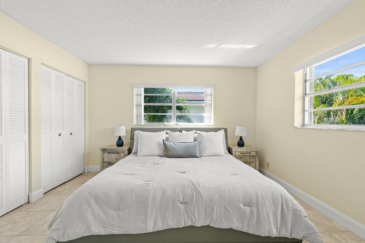 Სუპერ მიმზიდველი სანაპირო კონდომინიუმი ოკეანის მოპირდაპირედ, პალმ-ბიჩის სანაპიროებზე! Ახლად მოწყობილი 2/2 კონდომინიუმი მაგარი სანაპირო ზოლით. Აიღეთ დაფა, დაიჭირეთ ტალღები ან, უბრალოდ, გააღეთ ფანჯარა და დატკბით ოკეანის სასიამოვნო ბრიზით. Ხანმოკლე გასეირნება გაკრიალებულ პლაჟებზე, შემოსასვლელში, სათევზაო ხვრელებში, აკვალანგით ყვინთვის საუკეთესო ადგილებში, მანქანით გასეირნების/ველოსიპედის გარეშე. Პოპულარული sailfish marina და რესტორნები. Დიდი ზომის ლეიბები ორივე საძინებელში.