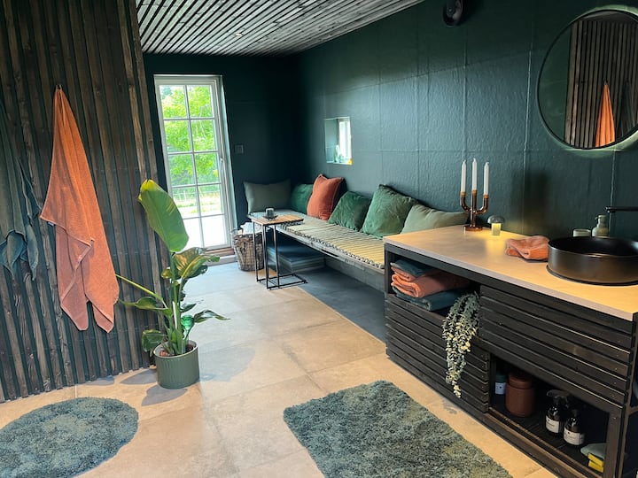 Ხის სახლი სოფლად დალარნაში ახლად აშენებული რელაქსაციით/საუნით